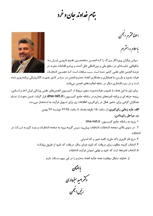 فراخوان ثبت نام کاندیداتوری در هیات مدیره انجمن علمی متخصصین علوم دارویی ایران