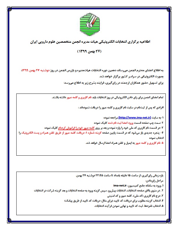اطلاعیه انتخابات هیات مدیره انجمن-27 بهمن 1399
